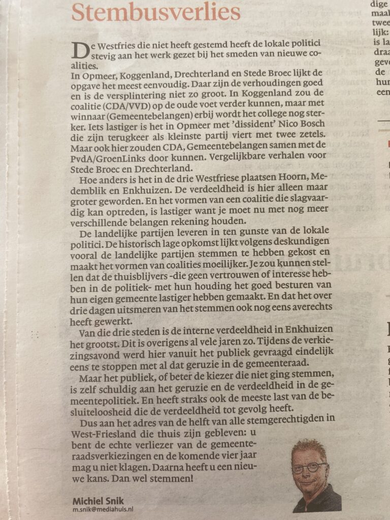 In de DVG-uitgave van 2 februari heeft de LPO aangegeven dat zij vragen zou stellen aan de wethouder over de vertraagde realisatie van het Kindcentrum Spanbroek/Opmeer. In de raadsinformatiebrief werd vermeld dat het proces door de bouwheer tijdelijk werd stilgelegd. De informatieavond voor de omwonenden en de ouders werd in het najaar ook al afgelast. […]